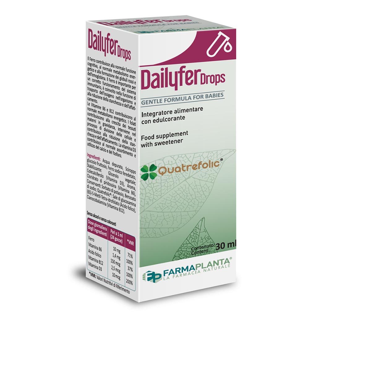 Dailyfer Drops è un integratore alimentare sviluppato per bambini e adolescenti contenente Ferro sodico feredetato, un particolare sale di ferro dotato di elevata biodisponibilità, in grado di mascherare il sapore del ferro e di non incidere negativamente sul microbiota intestinale.